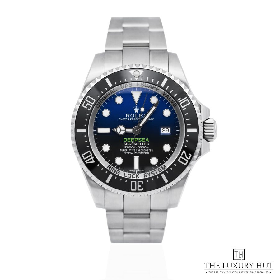 Rolex exclusively made the D-Blue dial for the Deepsea dive watch to commemorate James Cameron’s historic solo dive to the bottom of the Mariana Trench. This unique blue dial fades from top to bottom, transitioning from a stunning blue to a deep black. This two-colour gradient dial celebrates the way light fades and the water darkens as you dive deeper into the ocean's surface.