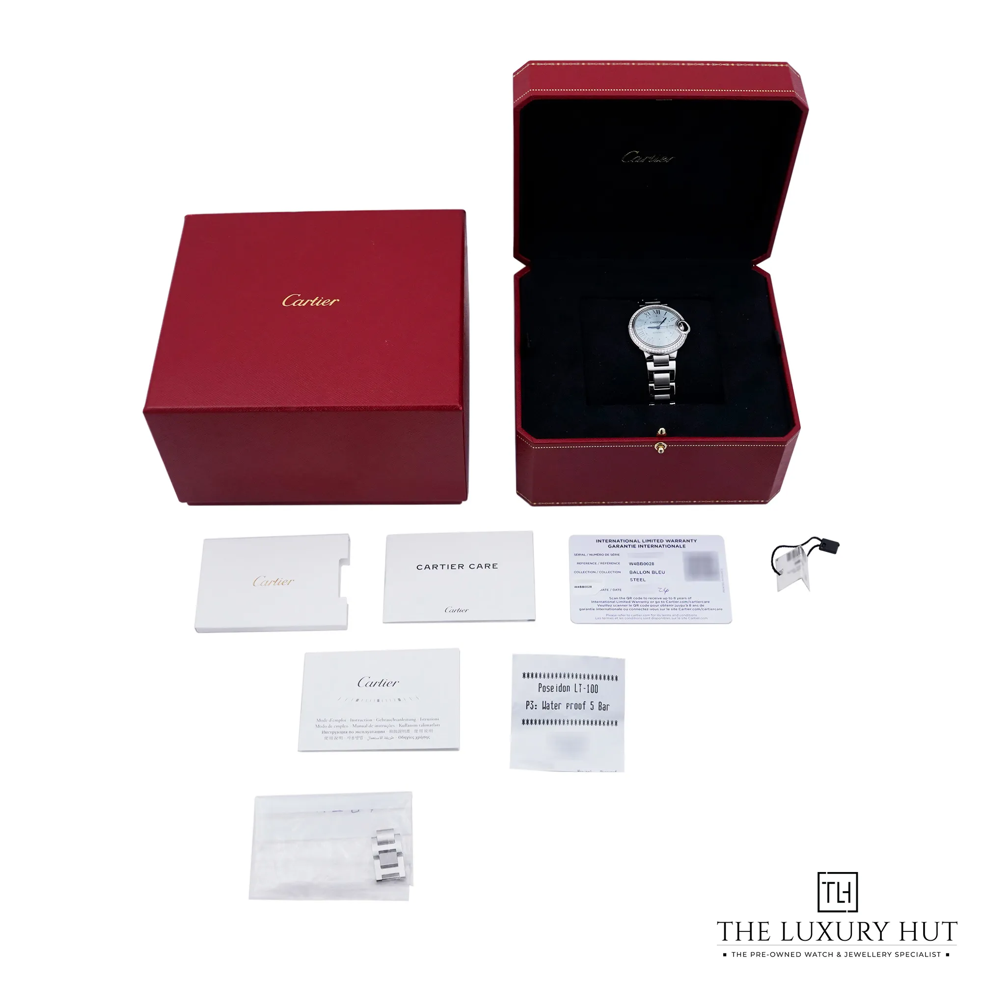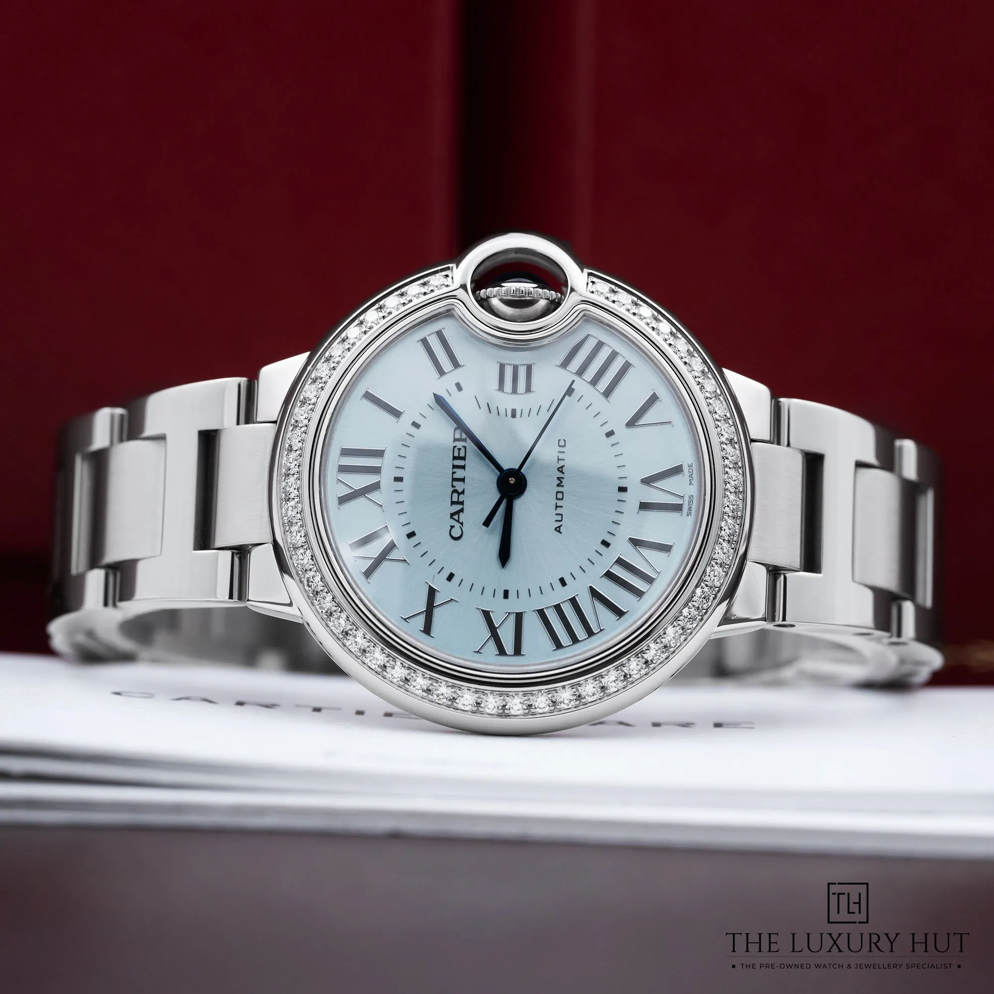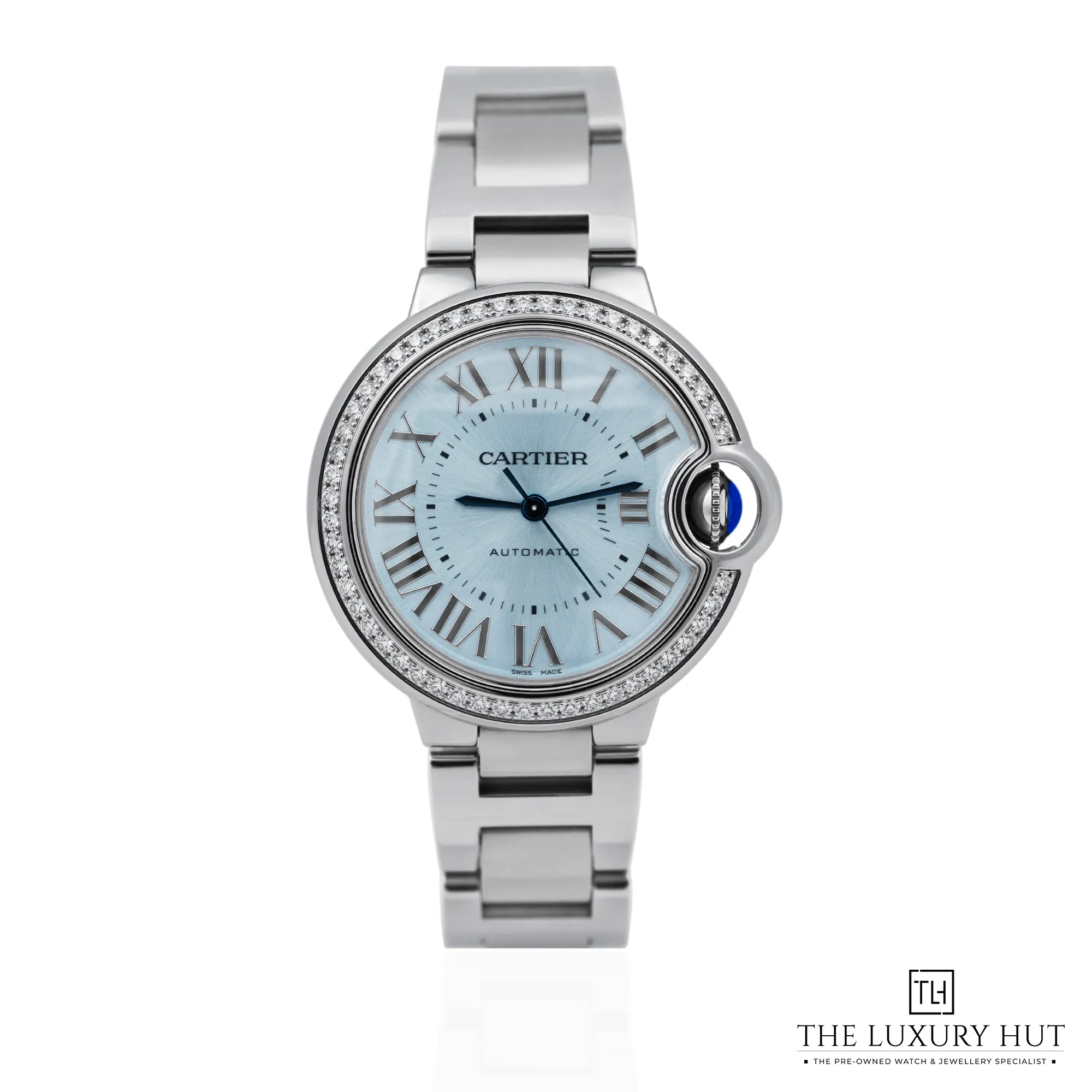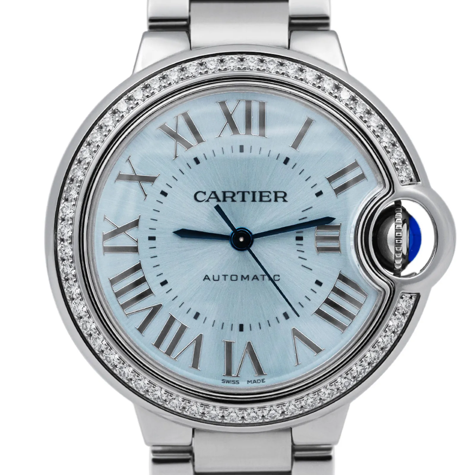 Cartier Ballon Bleu W4BB0028 33mm Steel Blue Silvered Dial & Diamond Bezel - Full Set - 2024