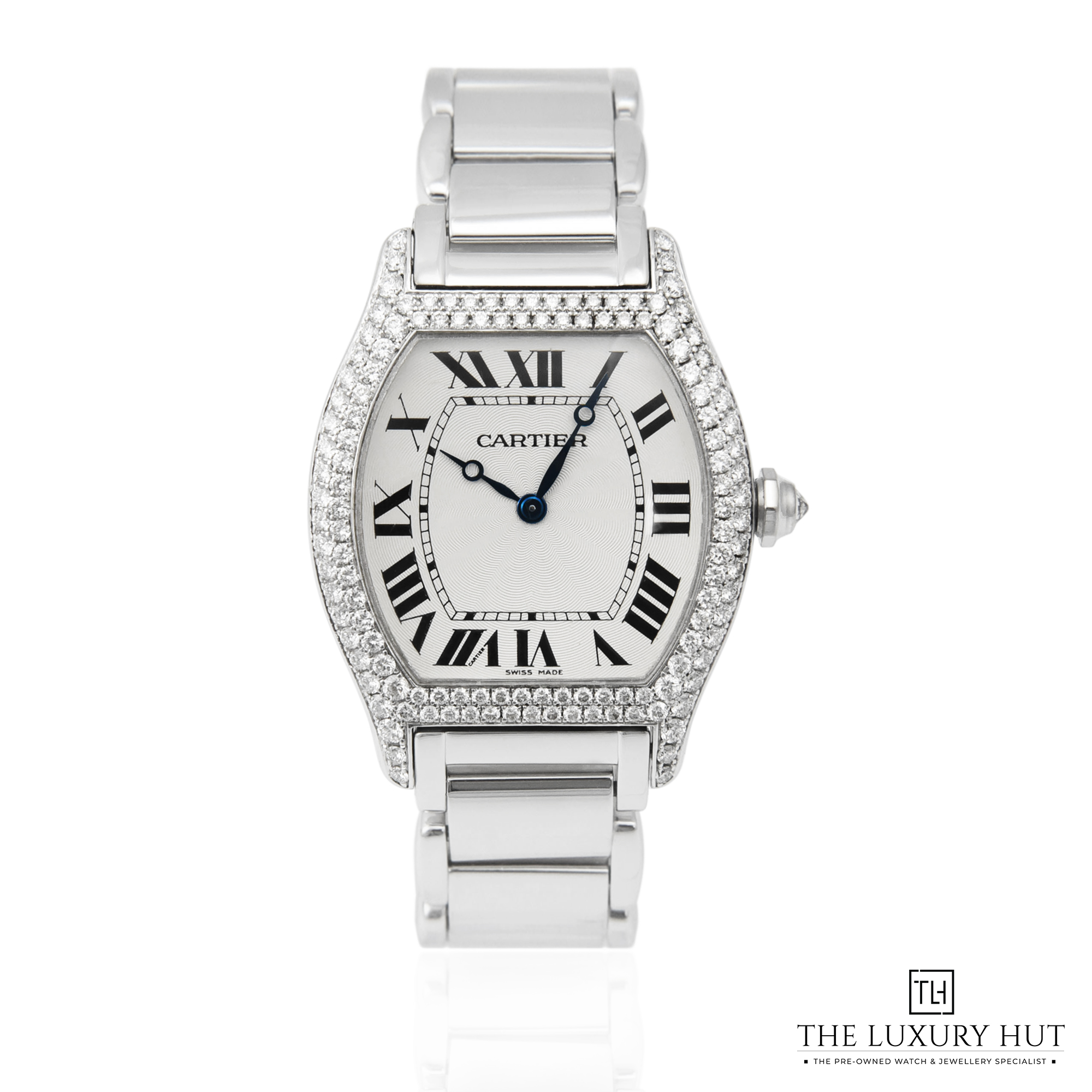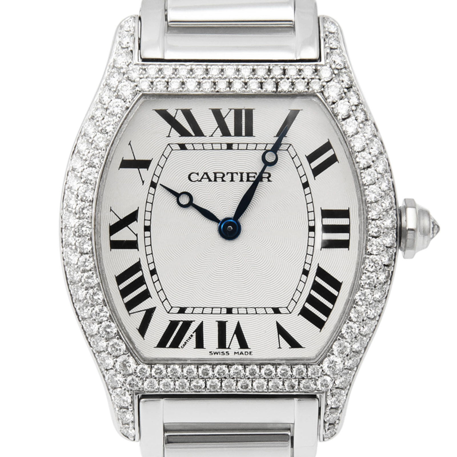 Cartier Tortue 2497 18ct White Gold 34mm Silver Dial Factory Diamonds - Cartier Serviced 2023