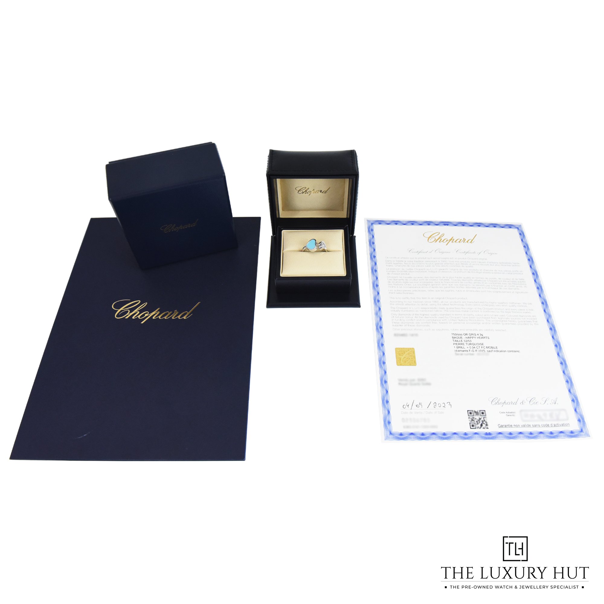 Chopard Happy Hearts 18ct White Gold 0.04ct Turquoise Diamond Ring - Size M 1/2 - Full Set - 2023