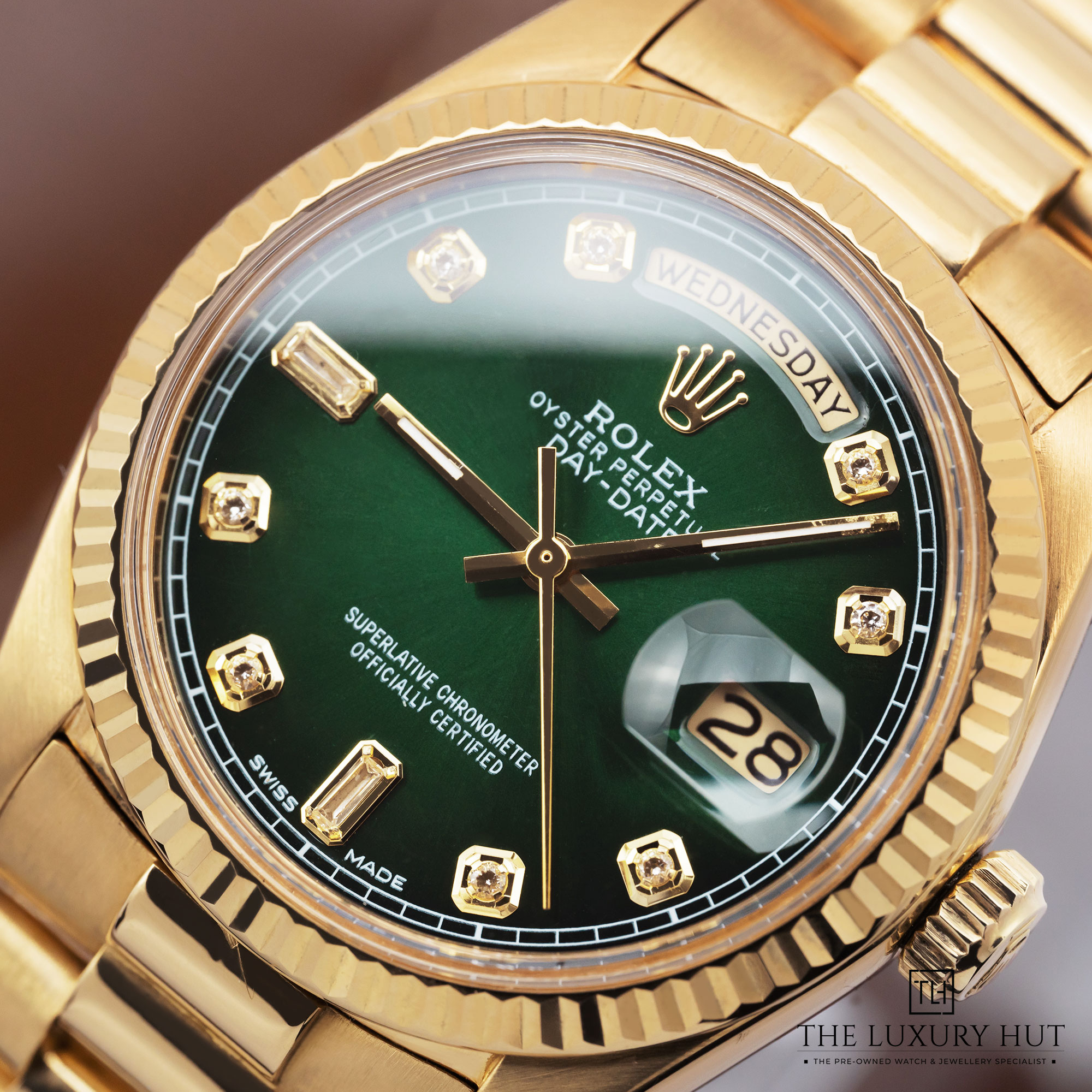 Rolex Day-Date 18038 Vintage 36mm 18ct Yellow Gold After-Set Green Diamond Dial - 1978
