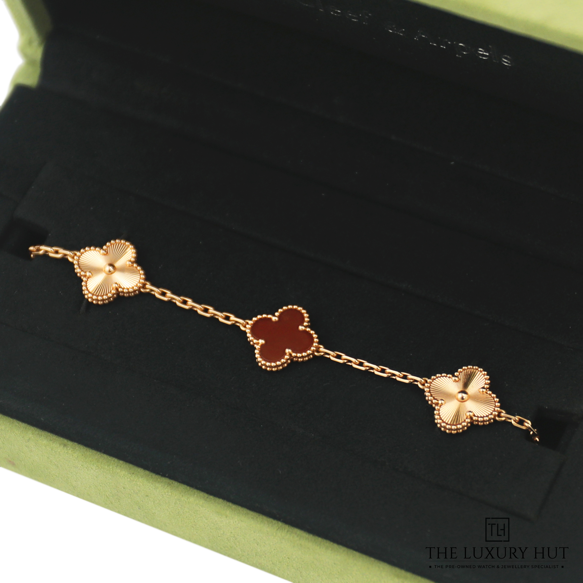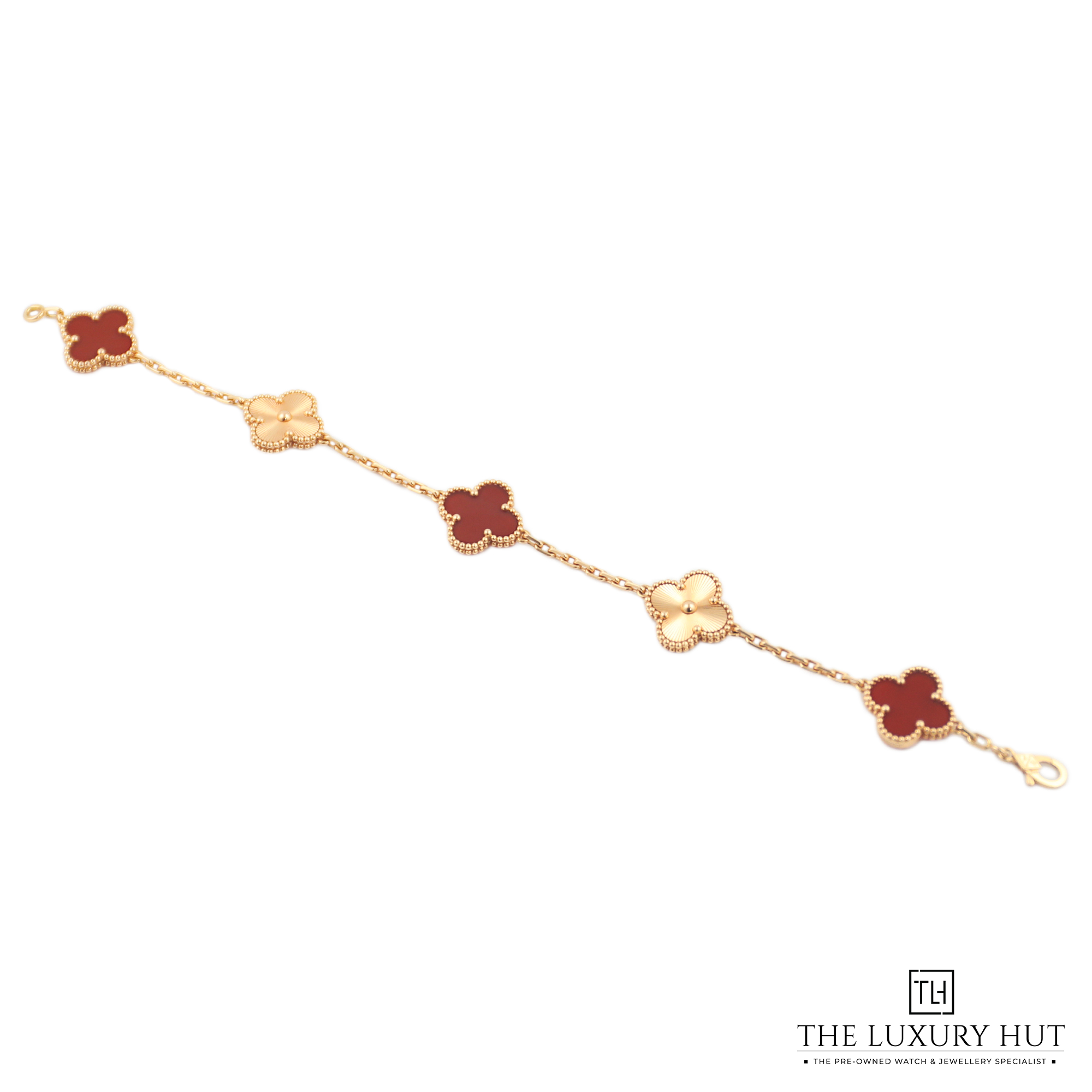 Van Cleef & Arpels Vintage Alhambra VCARP7RP00 Bracelet 5 Motifs, Guilloché 18ct Rose Gold, Carnelian 18.5cm - Full Set 2023